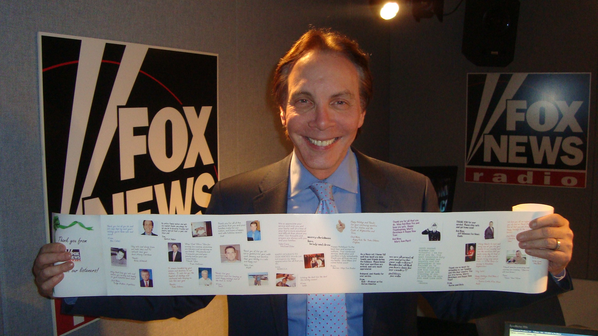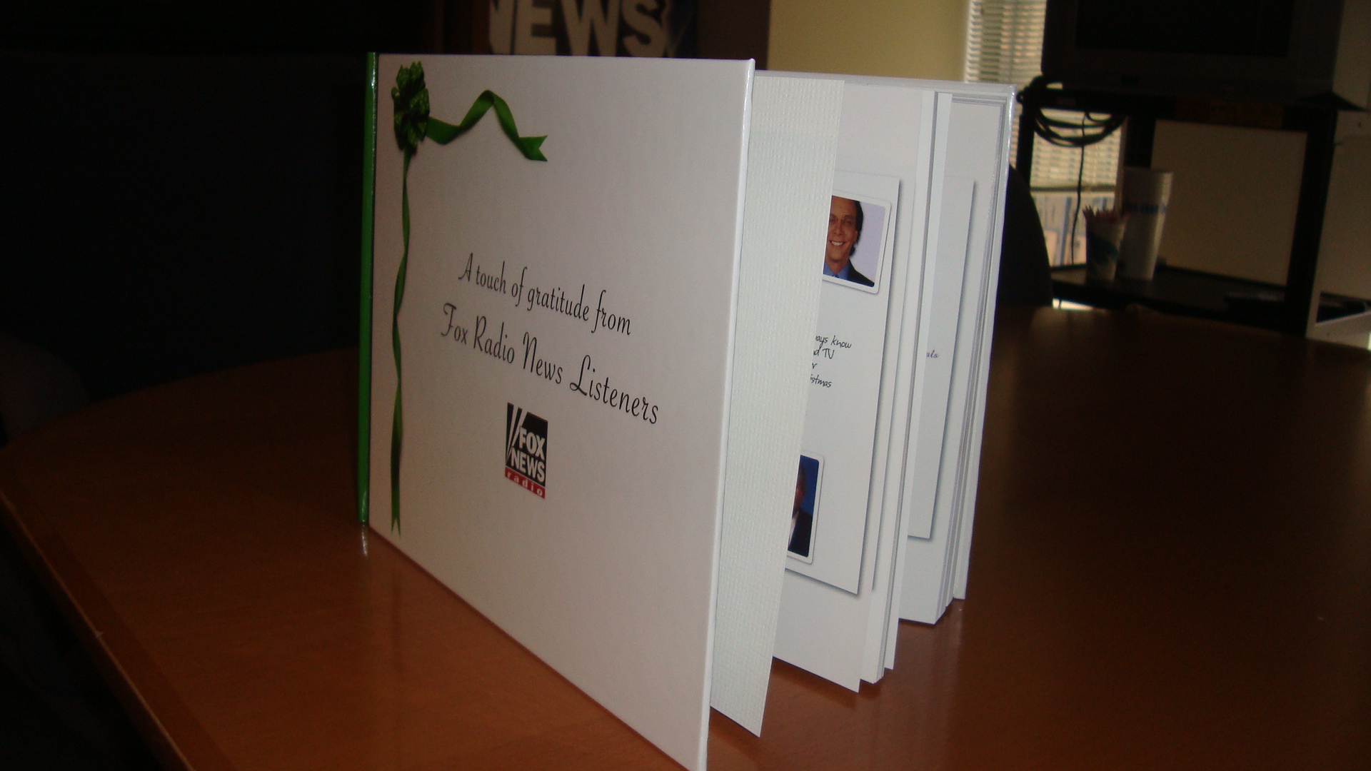 The long roll poster card and printed book of all signatures has arrived at FOX News Radio headquarters in NY. Here are a few photos of our hosts and affiliate sales folks with both. A copy of each was sent to troops in Afghanistan and Iraq at the same time. As soon as photos, or videos are available we will post them here.