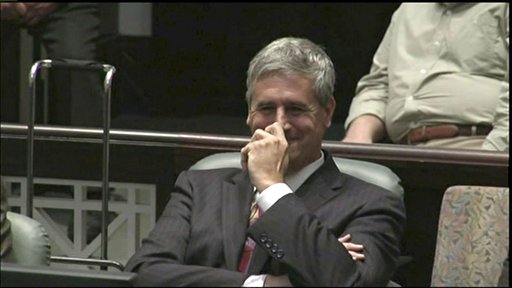 This video frame grab provided by InSession TV shows assistant state attorney Jeff Ashton smiling at the presentation of defense attorney Jose Baez during the defense team’s closing arguments in the Casey Anthony trial at the Orange County Courthouse in Orlando, Fla. on Sunday, July 3, 2011. The trial was stopped when Baez yelled at Asthon during the presentation. (AP Photo/InSession)