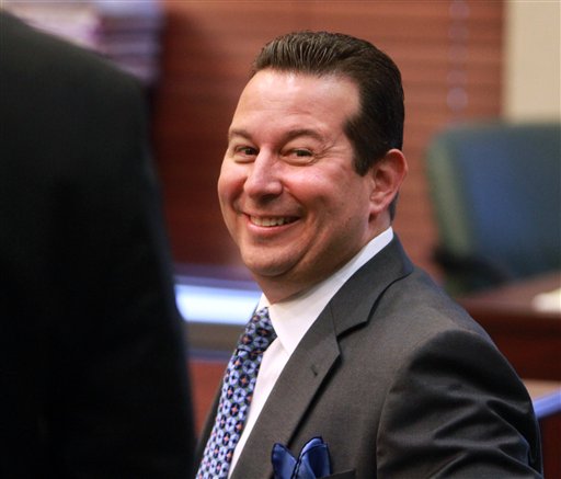 Casey Anthony’s defense counsel, Jose Baez, reacts during the hearing at the Orange county courthouse on Friday, Aug. 5, 2011 in Orlando, Fla. Judge Belvin Perry is deciding whether Casey Anthony has to return to Florida to serve probation for check fraud. A court spokeswoman said Perry likely would issue a ruling next week. Anthony has disappeared from the public eye since a jury found her not guilty in the death of her 2-year-old daughter, Caylee, and she was released from the Orange County Jail. Her lawyers have not disclosed her location except to say she was out of state earlier this week. (AP Photo/Joe Burbank, Pool)