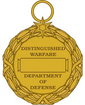 This image released by the Department of Defense shows the reverse view of the newly announced Distinguished Warefare Medal. The Pentagon is creating the new medal that can be awarded to troops who have a direct impact on combat operations but do it from afar. The medal will be awarded to individuals for “extraordinary achievement” related to a military operation. (AP Photo/Department of Defense)