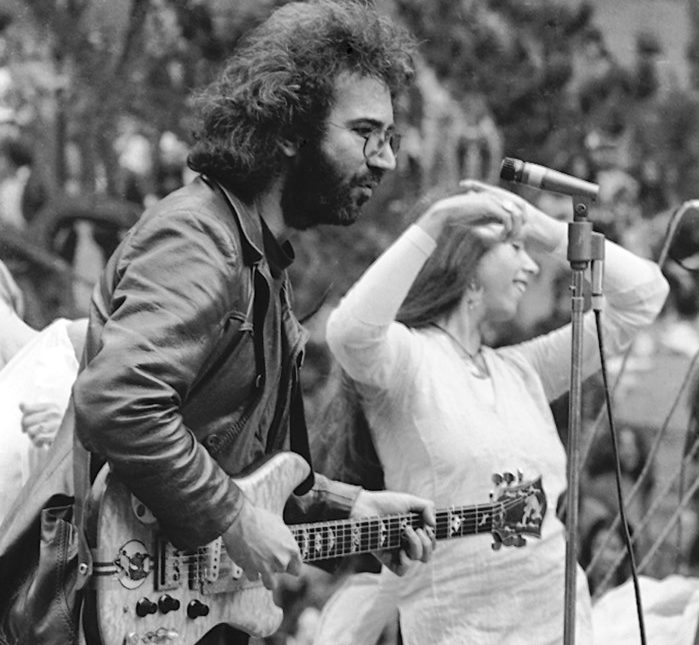 In this mid-1970’s photo provided by Guernsey’s, Jerry Garcia plays his infamous “Wolf” guitar at an outdoor concert in Golden Gate Park, San Francisco. Garcia’s guitar will go on auction May 31, 2017, at a Brooklyn bowling alley, restaurant and music venue, with proceeds benefitting the Alabama-based Southern Poverty Law Center. Devoted Deadhead, philanthropist, musician and film director Daniel Pritzker bought the guitar in 2002 at Guernsey’s for $790,000. This time the Wolf guitar could fetch as much as $1 million. (Roberto Rabanne/Guernsey’s via AP)
