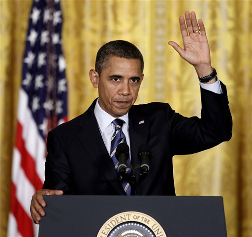 President Barack Obama gestures after speaking about No Child Left Behind, Thursday, Feb. 9, 2012, in the East Room of the White House in Washington. (AP Photo/Pablo Martinez Monsivais)