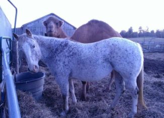 An Inseparable Bond Between Caesar the Camel & Dolly, the Blind Horse