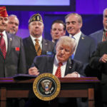 President Trump calls for unity before signing a veterans bill in front of the American Legion's national convention.