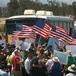 Buses full of illegal immigrants are turned way from one California city after officials urged residents to fight back.